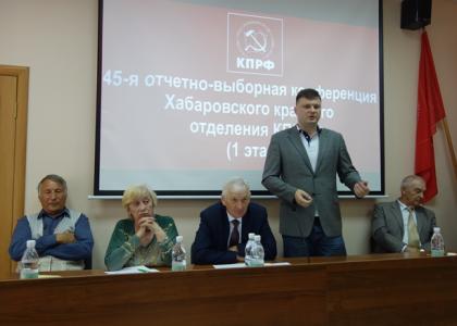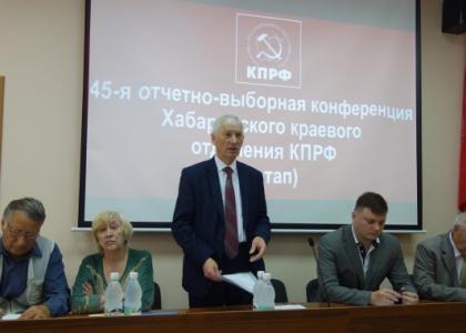 Состоялся 1 этап 45 отчетно-выборной конференции Хабаровского краевого отделения КПРФ. С докладом об итогах выборной кампании 2018 г. и задачах участия региональной партийной организации в выборах губернатора, мэра Хабаровска и местных органов власти выступил первый секретарь крайкома А.П. Громов.
