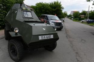 флаги и Знамена Победы, украшением автоколонны стал броневик от клуба «Стальная