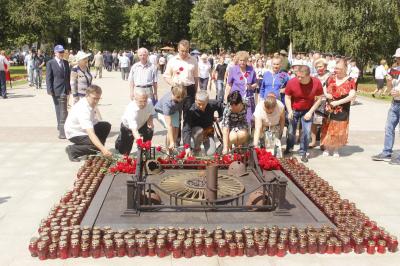 22 июня ярославцы почтили память солдат и офицеров Великой Отечественной войны у Вечного огня. Цветы к мемориалу возложили официальные лица, ветераны Вооружённых сил и молодые ярославцы – школьники и воспитанники суворовских училищ.