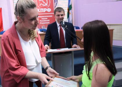 По традиции в начале Конференции под аплодисменты были вручены партийные награды наиболее отличившимся коммунистам. После чего секретарь ЦК КПРФ Мария Дробот и первый секретарь Коми рескома комсомола Валерия Михайлова вручили дипломы участникам регионального отборочного тура Всероссийского конкурса детского и юношеского творчества «Земля талантов».