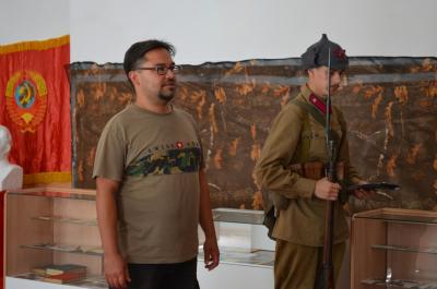 Началась экскурсия с исторической справки о событиях, комсомольца Виктора Кабака. После этого представители клуба «Комсомолец» в форме образца 1938 года рассказали гостям об экспонатах выставки.