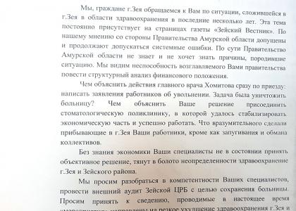 обращение от жителей Зеи с просьбой разобраться в ситуации. Письмо подписали