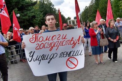 убьет наших детей!», «Народ против повышения пенсионного возраста!»