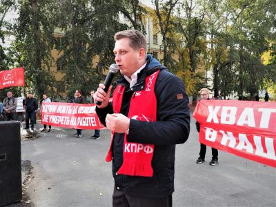 Открывая протестную акцию Первый секретарь свердловского обкома КПРФ