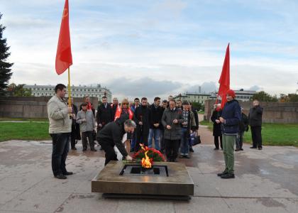 После этого ленинградцы возложили к вечному огню цветы и венок от Санкт-Петербургского городского отделения КПРФ в память о погибших защитниках Советской власти.