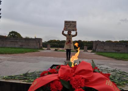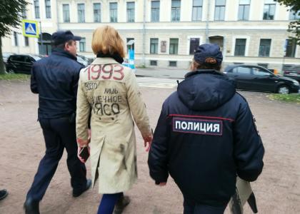 Когда возложение цветов уже завершилось, сотрудники полиции задержали девушку, которая проводила одиночный пикет в память о событиях 1993 года на некотором удалении от вечного огня. Без предъявления обвинений участницу одиночного пикета, активистку Санкт-Петербургского отделения ЛКСМ РФ Элину Дуняшеву препроводили к полицейской машине, после чего предприняли попытку доставить девушку в 78 отдел полиции. После вмешательства руководителя фракции КПРФ в Законодательном Собрании Санкт-Петербурга О.А. Ходуновой, выступившей против полицейского произвола, девушка была отпущена на свободу.