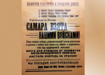Листовка Казанского Совета с сообщением об освобождении Самары. 1918 г.