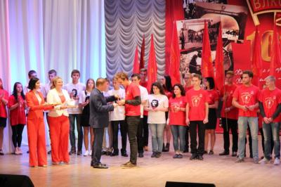 Под аплодисменты зала Владислав Егоров вручил комсомольские билеты ребятам, вступившим в Ленинский Комсомол.