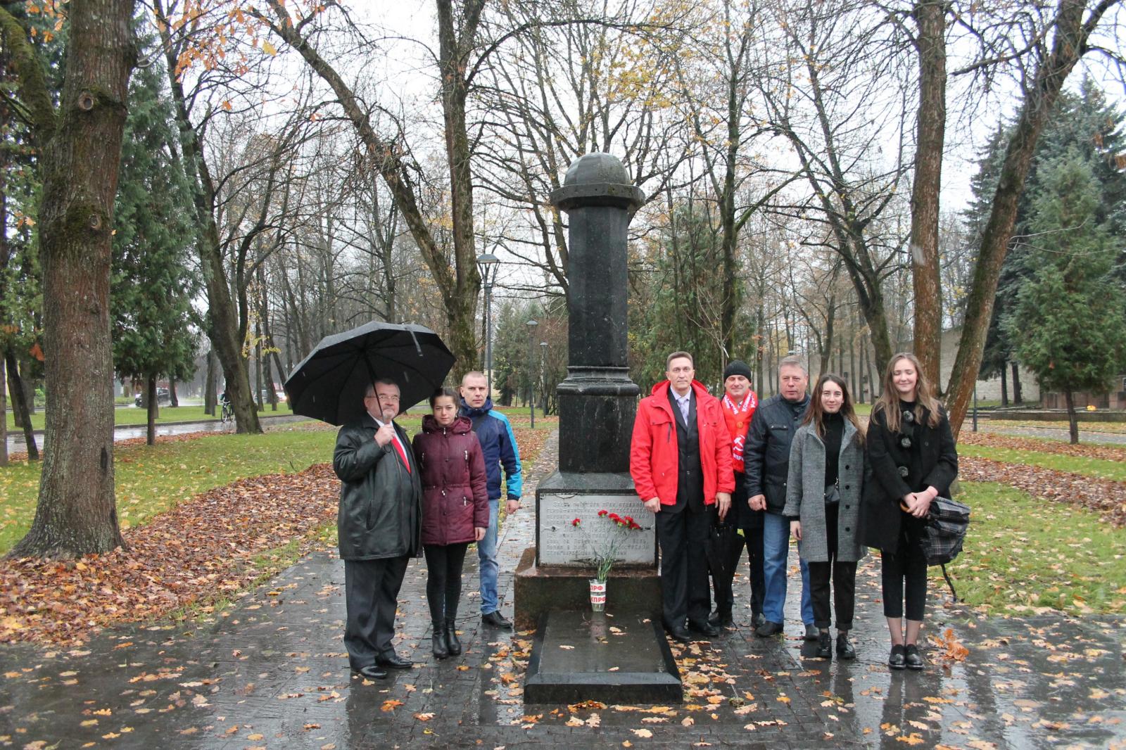 Прямо посреди торжественного собрания поступило предложение направить представителей во главе с Богдановым Сергеем Михайловичем, внуком Богданова Александра Петровича комсомольца 30 годов, для возложения цветов на могилу Леона Поземского. И делегация коммунистов и комсомольцев почтила память героя у памятника в Аллее павших бойцов.