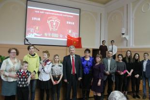 Молодые комсомольцы – ведущие со сцены говорили о том, что хранят связь времен и поколений, помнят и чтут славную историю комсомола. Она воспета в стихах и песнях, отмечена орденами и монументами. Говорили о тех, чья молодость слилась с борьбой за победу в Революции и Гражданской войне, об истории комсомола на Псковщине, о том, что во время третьей всероссийской мобилизации псковские комсомольцы послали на фронт 250 лучших товарищей. Великолучанин Александр Степанов, Павел Царик, Иван Манголенко, Леон Поземский.