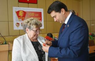 ветеранов комсомола Олег Лебеде вручил памятную медаль «100 лет ВЛКСМ».