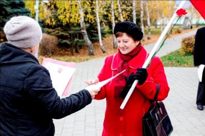 Открывая митинг в Комсомольском сквере, первый секретарь Ефремовского ГК КПРФ Любовь Стаброва поздравила участников автопробега с праздником и вручила почетные грамоты ветеранам, которые до сих пор живут под девизом: «Не расстанусь с комсомолом! Буду вечно молодым!»