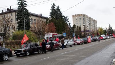 Полтора десятка машин под красными знаменами проехали через весь город в честь столетнего юбилея Ленинского Коммунистического Союза Молодежи.