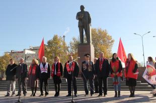 Руководители Крымского рескома, Ленинского комсомола, ветераны партии, войны и труда под мелодию "Ленин всегда живой" возложили цветы к памятнику В.И.Ленина. Звучит Гимн СССР. Ведущие митинга, прославив Великий Октябрь, Коммунистическую партию, Советский народ, предоставили слово следующим товарищам: первому секретарю Крымского республиканского отделения КПРФ Сергею Богатыренко, первому секретарю республиканского отделения ЛКСМ РФ Илье Донченко, члену Центрального Комитета КПРФ Анне Клочковой, комиссару республиканского отделения Союза Советских офицеров Крыма Валерию Кучеренко, председателю республиканского отделения Всероссийского женского движения "Надежда России" Марине Перестенко, учащейся школы города Симферополя Амине Шабановой, первому секретарю Белогорского РК КПРФ Николаю Колесникову, партийному активисту Гвардейского первичного партийного отделения КПРФ Симферопольского района Александру Фертикову и другим.