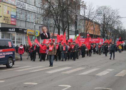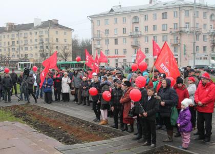 Митинг открыл первый секретарь Псковского горкома КПРФ Сергей Федоров, поздравил собравшихся с очередной годовщиной Великого Октября. Затем состоялось возложение цветов к памятнику В.И.Ленина.
