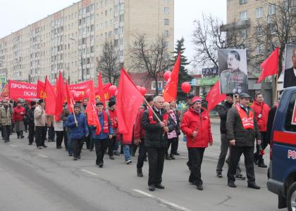 Демонстрация и торжественный митинг в честь 101-й годовщины Великой Октябрьской социалистической революции прошли в Пскове 7 ноября. Торжественная колонна начала свое шествие от магазина «Маяк» ровно в полдень. Около сотни человек под звуки коммунистических лозунгов проследовали по Рижскому проспекту до площади Ленина, где в 13 часов состоялся торжественный митинг.