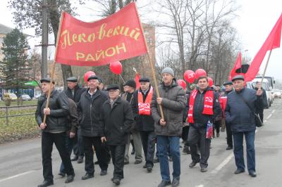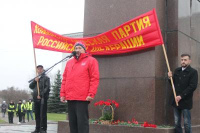 Митинг открыл первый секретарь Псковского горкома КПРФ Сергей Федоров, поздравил собравшихся с очередной годовщиной Великого Октября. Затем состоялось возложение цветов к памятнику В.И.Ленина.