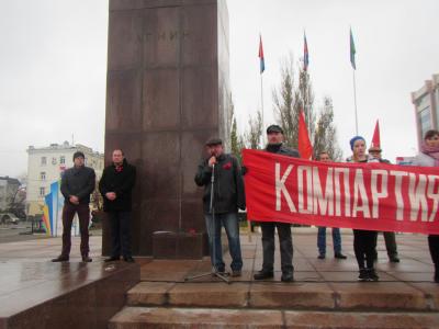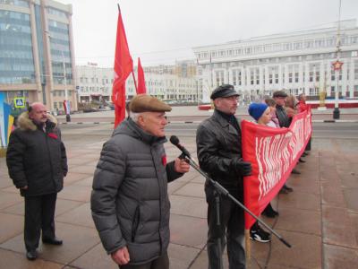 Также на митинге выступил В.П. Кутанов, коммунист Мичуринского РО КПРФ, он прочитал стихотворение С. Есенина о Ленине.