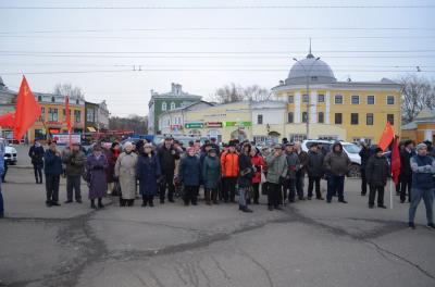 7 ноября в Вологде на площади Свободы состоялся торжественный митинг, посвященный 101-й годовщине Великой Октябрьской социалистической революции и организованный Вологодским городским и областным отделениями КПРФ. На митинге выступили первый секретарь Вологодского обкома КПРФ А. Морозов, первый секретарь Вологодского горкома КПРФ О. Савельев, помощник депутата Государственной думы (фракция КПРФ) И. Коряковский, коммунисты Д. Климович, С. Городишенин, вологжане Е. Коноплев, И. Анферьев, С. Губа и другие, в том числе и представители молодежи.