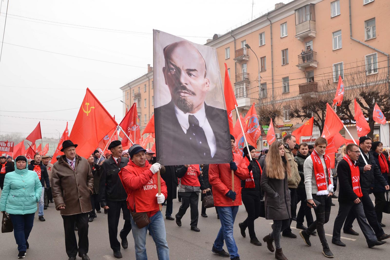 Активное участие в шествии приняли активисты КПРФ и ЛКСМ, общественных