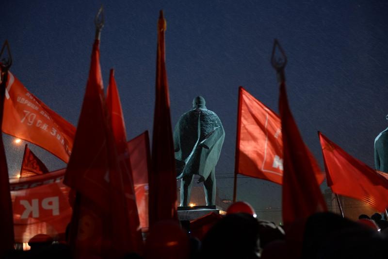 Тысячи новосибирцев прошли маршем по Красному проспекту под коммунистическими знаменами и провели митинг у памятника вождю мирового пролетариата Владимиру Ленину. Именно так они встретили 101-ю годовщину Великой Октябрьской социалистической революции, которая в этот раз прошла под знаменем протеста против «пенсионной реформы».
