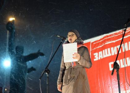 От лица молодежи на сцене выступил второй секретарь Новосибирского обкома ЛКСМ РФ Виталий Саликов, который уверен, что в стране не будет единства, пока будет разделение на угнетателей и угнетаемых.