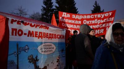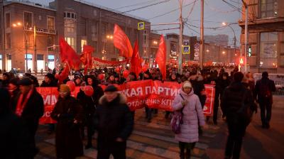Тысячи новосибирцев прошли маршем по Красному проспекту под коммунистическими знаменами и провели митинг у памятника вождю мирового пролетариата Владимиру Ленину. Именно так они встретили 101-ю годовщину Великой Октябрьской социалистической революции, которая в этот раз прошла под знаменем протеста против «пенсионной реформы».
