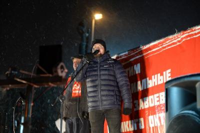 От лица молодежи на сцене выступил второй секретарь Новосибирского обкома ЛКСМ РФ Виталий Саликов, который уверен, что в стране не будет единства, пока будет разделение на угнетателей и угнетаемых.