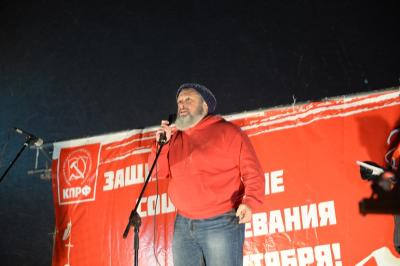 – История Новосибирска связана с советским периодом и все попытки сделать вид, что нет праздника Великой революции — бесмыслены. Потому что это великий праздник. Мы показали всему миру удивительный эксперимент, и каким великим государством был Советский Союз. А теперь правительство удушает свой народ убийственными реформами, обрушая доверие этого самого народа. Пускай они смотрят на этот праздник и извлекают урок.