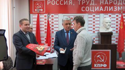 По традиции первый секретарь Чувашского рескома КПРФ В.С. Шурчанов вручил партийные билеты вступившим в ряды партии товарищам.