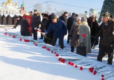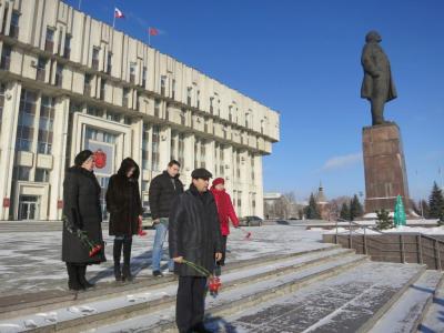 В 95-ю годовщину со дня смерти вождя мирового пролетариата тульские коммунисты во главе с первым секретарем обкома КПРФ Олегом Лебедевым возложили цветы к памятнику В.И. Ленину.