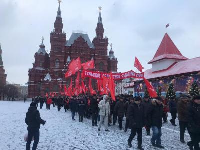 традиции, коммунисты прошли по площади Ленина к памятнику.