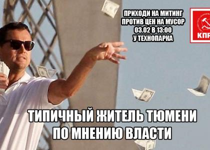 3 февраля КПРФ проводит митинг в Тюмени против цен на вывоз