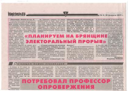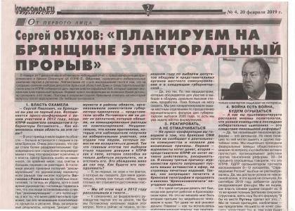 Секретарь ЦК КПРФ, доктор политических наук Сергей Обухов дал подробное интервью журналистам газеты «Комсомолец Брянска» по проблемам подготовки регионального отделения КПРФ к предстоящим всеобщим выборам в регионе. Здесь в ЕДГ-2019 будут избираться почти все муниципальные советы и областная дума.