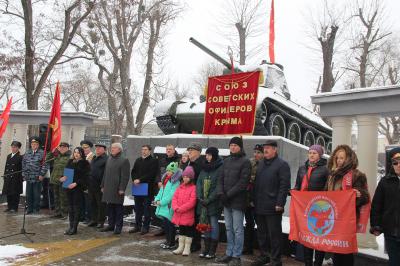 23 февраля в Симферополе состоялся митинг, посвященный 101-й годовщине создания Красной Армии и Военно-Морского Флота. В сквере Победы собрались коммунисты, комсомольцы, представители Союза советских офицеров Крыма, ветераны Великой Отечественной войны, труда и партии и жители крымской столицы.