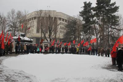В начале митинга было зачитано поздравление Председателя ЦК КПРФ, руководителя фракции КПРФ в Госдуме Геннадия Андреевича Зюганова.