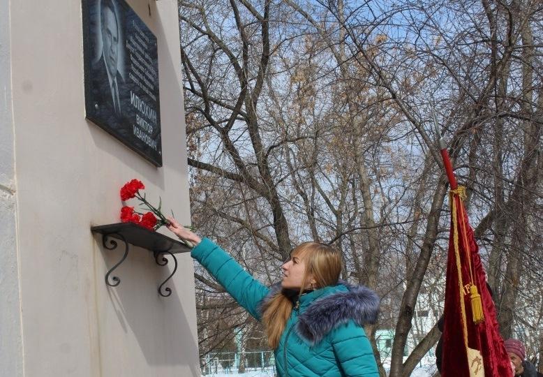 мемориальной доске Виктора Илюхина.