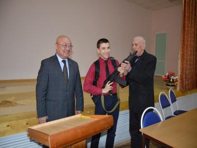 По весу и с виду «игрушку» от настоящего оружия не отличишь, и мальчишки выстроились в очередь, чтобы подержать в руках и сфотографироваться с экспонатом для уроков по ОБЖ - основам безопасности жизнедеятельности. Рад был подарку и ветеран педагогического труда Валентин Галкин, который учил когда-то лидера коммунистов Калмыкии мастерить швабры и табуретки.