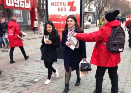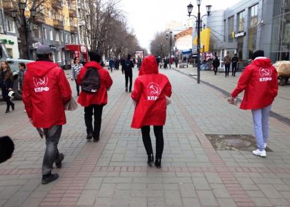Молодые люди в красных кепках и накидках с символикой КПРФ, раздавали спецвыпуск партийной газеты "Коммунист. Думские баррикады", где отражена критическая позиция КПРФ по губительной политики антинародной власти, росту цен и тарифов на ЖКУ, поборов за капремонт и ОДН, увеличивающейся безработицы и углубляющегося социально-экономического кризиса, а также предложены пути выхода страны из исторического тупика.