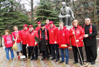 коммунисты каждый год в апреле приводят в порядок территорию вокруг памятника.