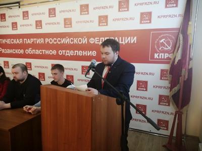 21 апреля состоялся торжественный Пленум Рязанского областного отделения ЛКСМ РФ, приуроченный к 100-летию Рязанского комсомола. В его работе приняли участие: первый секретарь Рязанского областного отделения КПРФ Денис Сидоров; секретарь Рязанского областного отделения КПРФ Эвелина Волкова; член ЦК КПРФ, руководитель Рязанского отделения ВСД «Русский лад» Владимир Николаевич Федоткин; комсомольский актив из Октябрьского и Железнодорожного районов города Рязани, Сасовского, Касимовского, Рязанского, Спасского и других районов области.