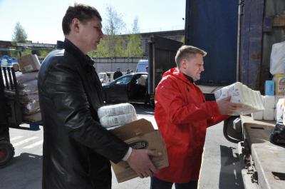 С утра уже здесь кипела работа по загрузке трёх многотонных фур. В грузе, в большом количестве, собраны крупы и макаронные изделия, мука, сахар, тушенка, бакалея, овощи, масло, молоко, одежда, книги, канцелярские и хозтовары, медикаменты. По пути к конвою присоединятся автомобили с грузами из Воронежа, Липецка, Курска, Северной Осетии, Кабардино-Балкарии, Карачаево-Черкессии и Ставрополя.