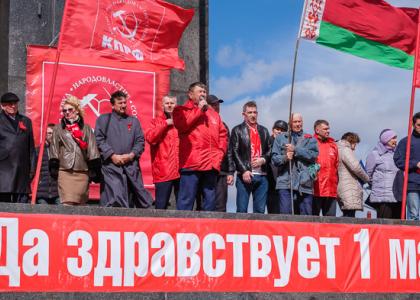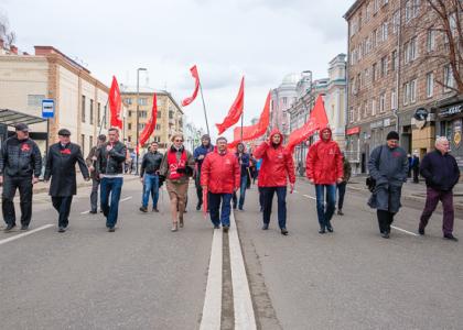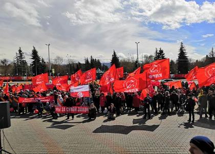 К первомайским колоннам краевого комитета КПРФ присоединились члены краевого отделения комсомола, организаций «Дети войны» и «Надежда России», организации «Трезвая Сибирь», активисты за сохранение Зелёной Рощи. Вместе с коммунистами на акцию свои требования пришли выразить экологи, активисты-дальнобойщики и дольщики, обманутые строительной компанией «Реставрация».