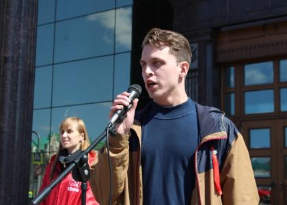 Коммунист Октябрьского районного комитета КПРФ Андрей Цесарев поднял тему отношения «Единой России» к гражданам нашей страны. Людоедские реформы, повышение цен и тарифов, рост стоимости бензина – всё это их рук дело. «Партию Едро – в помойное ведро!»,- подхватила его слова и начала скандировать толпа.