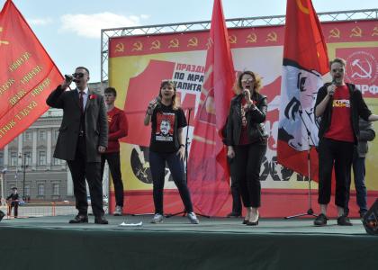 Вместе с КПРФ и Ленинским комсомолом РФ в колонне коммунистов по главной магистрали города на Неве прошли представители обманутых дольщиков, общественной организации «Дети войны», «Левого фронта», а также других общественных объединений. Лозунги были традиционными, праздничными, но вместе с тем боевыми: «Мир! Труд! Май!», «Вся власть Советам!», «Землю крестьянам – фабрики рабочим!», «Буржуи, под стол! Идет комсомол!». Всего в праздничных мероприятиях в одной колонне с коммунистами на главную магистраль города вышли более тысячи человек.