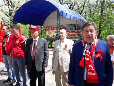 Митинг открылся под гимн Советского Союза. Ведущий мероприятия – председатель КРК краевого отделения КПРФ, и.о. первого секретаря горкома партии В.А. Адаменко первое слово предоставил В.И. Гончарову, который напомнил собравшимся об истории праздника, поблагодарил и ветеранов, и молодёжь, принимающих участие в праздновании Первомая, которое по славной советской традиции славит человека труда и подчеркнул: