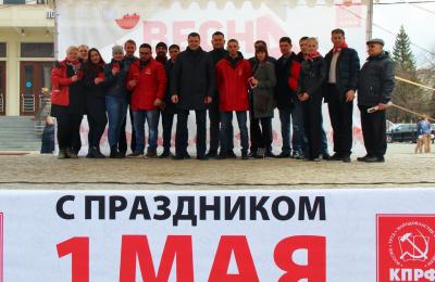- От лица всего депутатского корпуса: депутатов районных и сельских поселений, городских округов, региональных парламентов, Государственной Думы, с красным флагом, избранных и считающих себя коммунистами, поздравить вас с 1 Мая! Хочу пожелать, чтобы та солидарность, о которой говорят 1 Мая, была во всем, солидарность в труде, солидарность в поддержке друг друга. И ярким подтверждением этой солидарности будет участие наших кандидатов в избирательной кампании. Я приглашаю всех тех, кто разделяет коммунистические ценности и желает изменить нашу жизнь к лучшему, принимать активное участие в выборах различных уровней, которые состоятся осенью этого года!