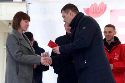 В честь торжественного мероприятия 17 новых товарищей были приняты в партию и получили партийные билеты. В команду КПРФ дружным строем влились активные, неравнодушные люди, разделяющие идеи партии и готовые выражать свою гражданскую позицию и отстаивать социально-экономические права и интересы народа: Крутень Владимир (Тракторозаводский район); Цибарт Евгений, Толмачёв Сергей (Ленинский район); Анучкина Виктория, Волгин Егор (Советский район); Полянский Андрей (Калининский район); Салимуллин Артур (Металлургический район); Салихов Наиль, Лебедев Сергей, Орлова Светлана, Баранов Денис, Кривицкий Владимир, Самойленко Александр (Центральный район); Натали Гордеева, Николай Кузнецов, Оксана Григорьева, Сазонова Елена, Микуров Павел (г. Копейск). Необходимо отметить, что абсолютное большинство вступивших в партию - в возрасте до 40 лет. КПРФ «молодеет» и привлекает в свои ряды всё больше молодежи!