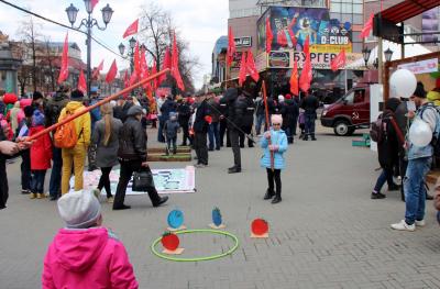 Праздник был также наполнен множеством конкурсов, органично встроенных между выступлениями певцов и танцоров. Люди активно отгадывали советские и современные песни, прислушивались к «звучанию» рабочих профессий и вспоминали символы Первомая и атрибуты Советского времени. А Вы помните, что в Советском союзе означали такие слова как «аэродром», «Березка», «ДНД», «гребенка» и «авоська»? Участники конкурсов получили ценные подарки.
