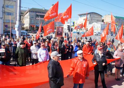 В 9 часов началось формирование колонны демонстрантов, которую возглавили руководители регионального отделения партии и депутаты областной и городской Дум, группа знаменосцев, молодых коммунистов и комсомольцев. В 9 часов 30 минут демонстрация двинулась по проспекту Ленина к площади Революции. По ходу движения колонны улицы и площади города наполнялись звуками песен советских композиторов и современных авторов протестной песни, летящих из мощных динамиков машины сопровождения. В перерывах между песнями демонстранты скандировали лозунги и речевки политического протеста. На удивление, как никогда, это получалось задорно и слаженно. У прохожих с тротуаров появлялось желание влиться в колонну и принять участие в действии, что они и делали.